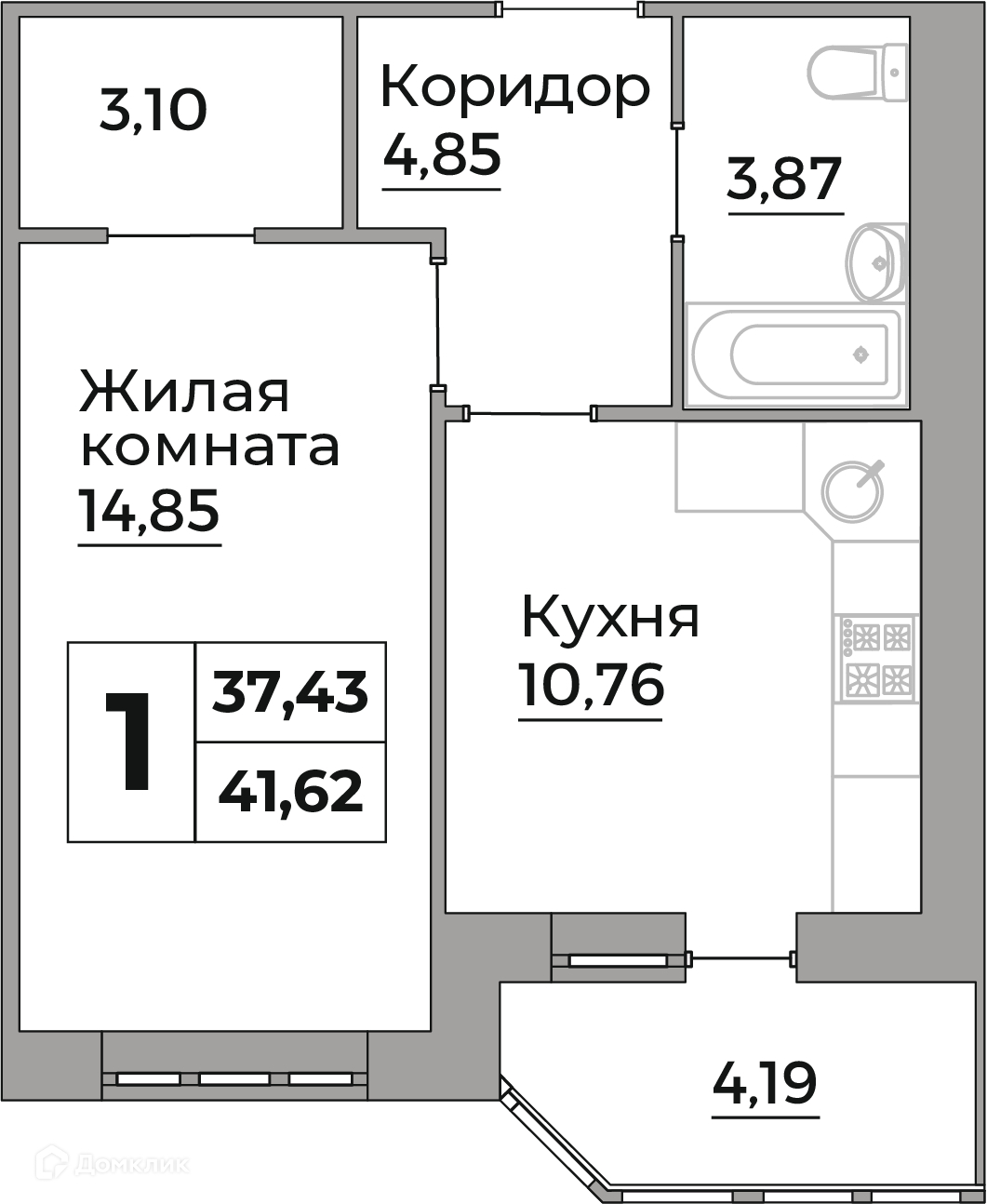 Планировка 2 комн. в ЖК Кошелев Парк