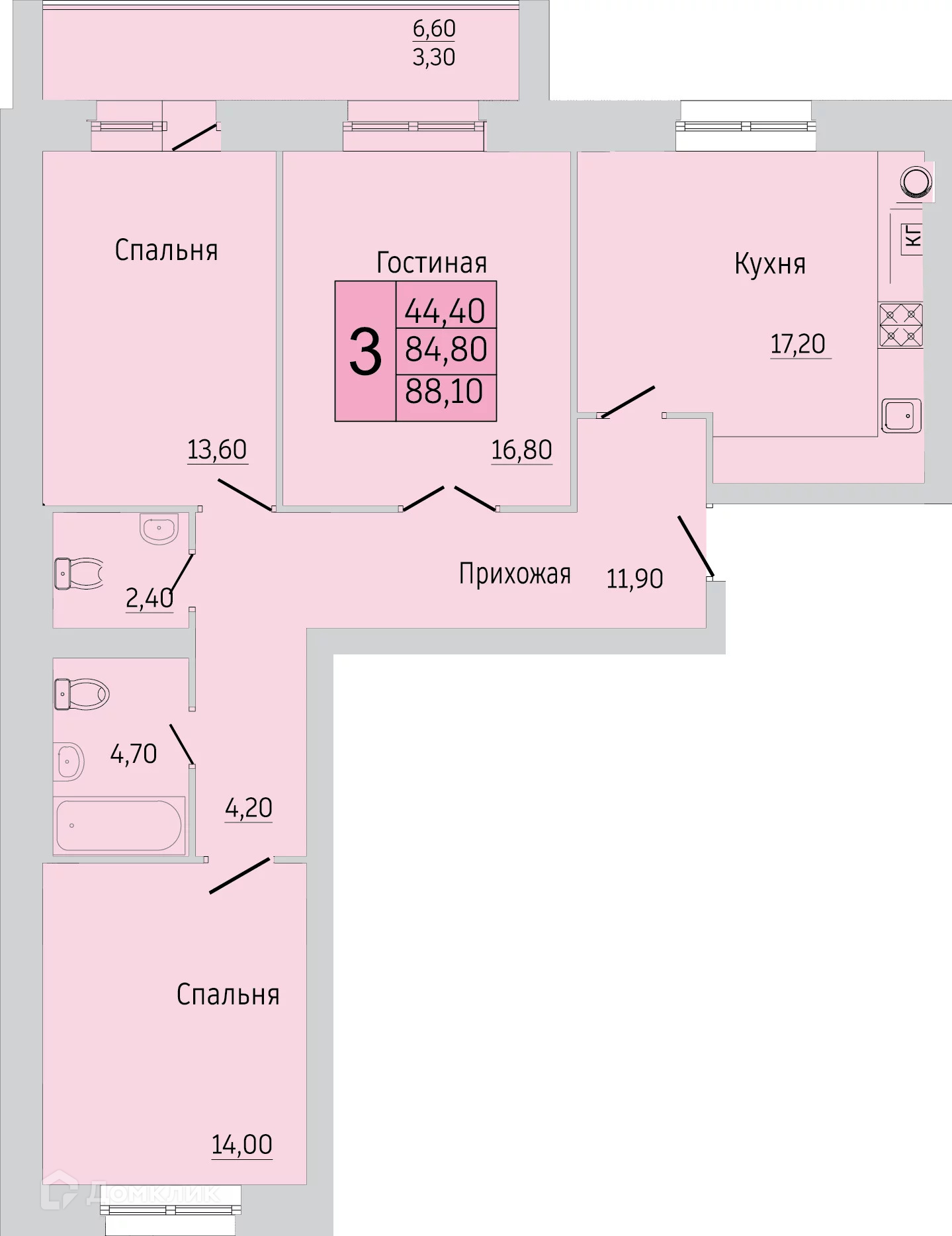- Количество комнат: 3-комнатная квартира
