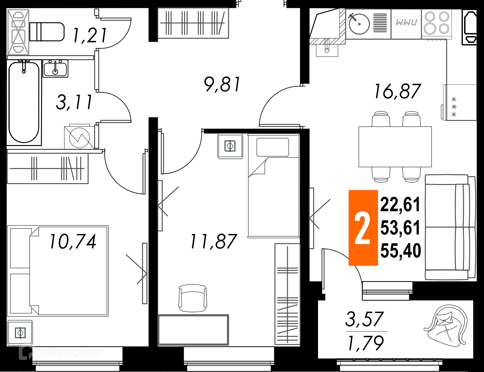 Планировка 2 комн. в ЖК КРЕЧЕТНИКОВ ПАРК