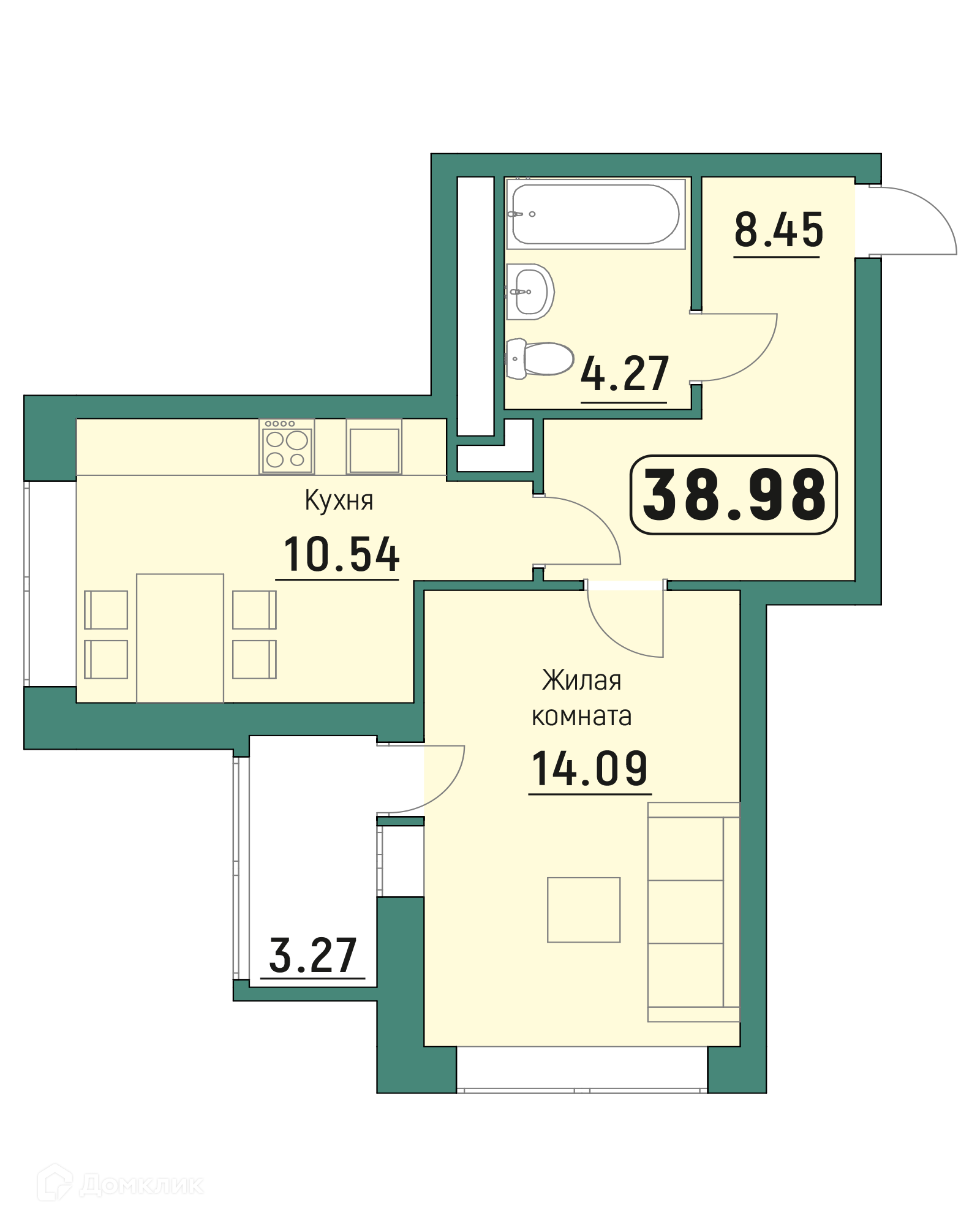 Планировка 1 комн. в ЖК "Куба"