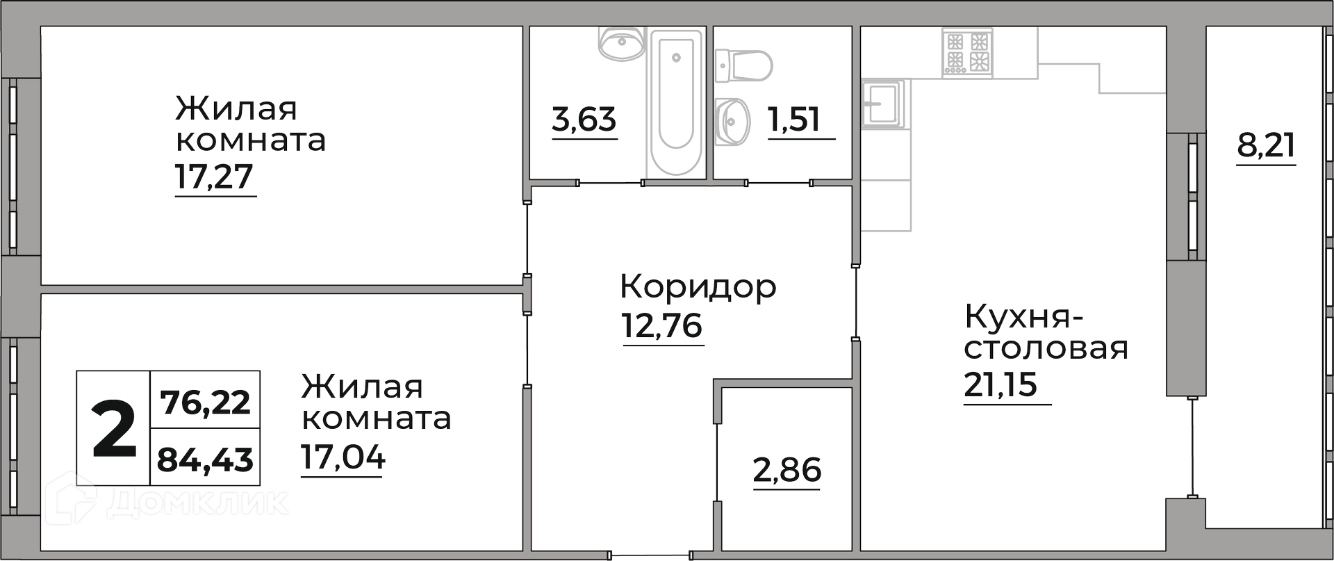 - Общая площадь: 76.22 м²
