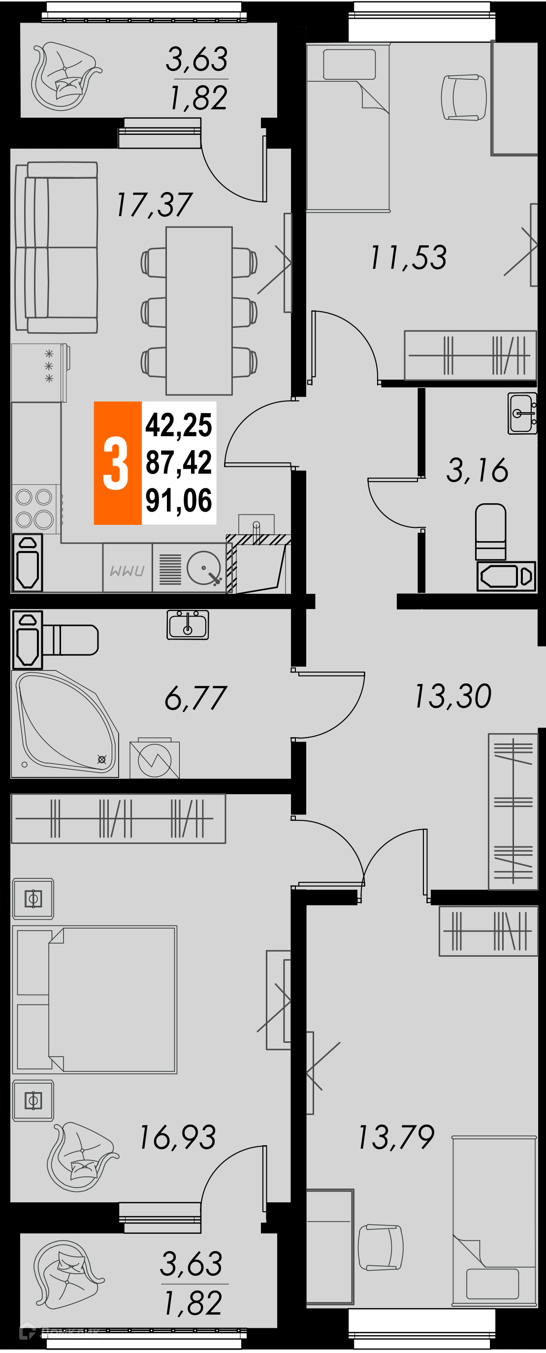 Площади квартир