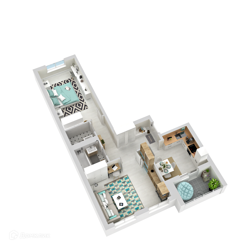 - Общая площадь: 59.6 м²