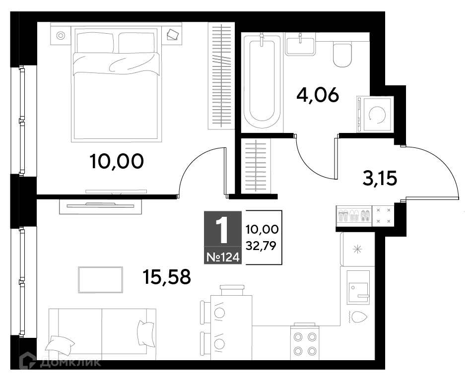 Планировка 1 комн. в ЖК Космопарк