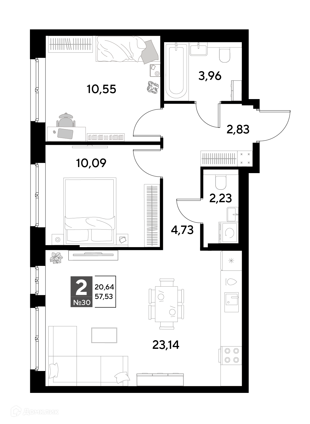 Планировка 2 комн. в ЖК Космопарк