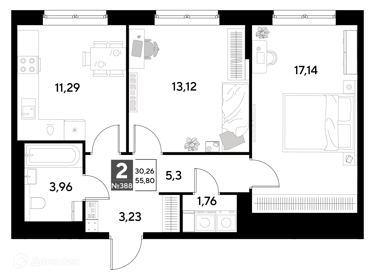 55.95 м²