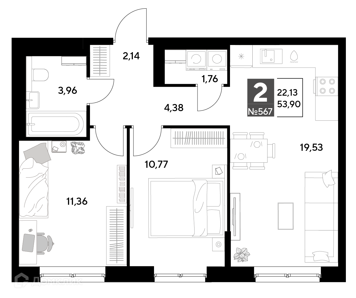 Планировка 2 комн. в ЖК Космопарк